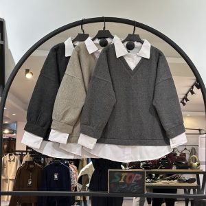 شومیز فوتر یقه هفت ترکیبی (34225)