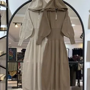 پیراهن یقه هفت بابوس ترک همراه با کمربند چرم (35298)