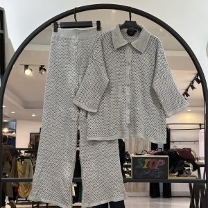 ست شومیز شلوار بافت حصیری زنبوری لمه دار (35703)