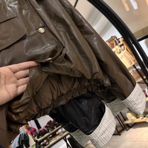 کاپشن چرم استین راه راه ترک (35757)