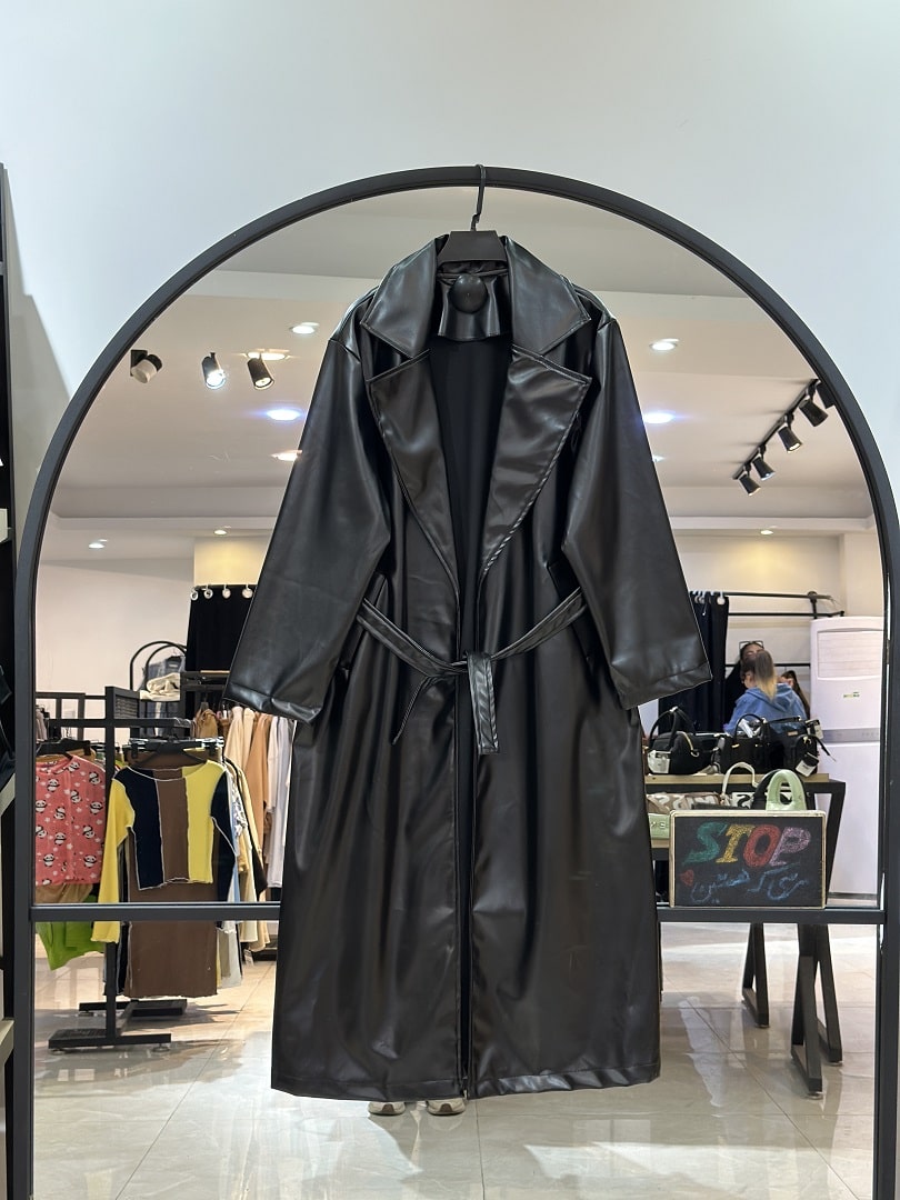 بارونی بلند چرم تو کرکی کمر بند دار یقه انگلیسی (36051)