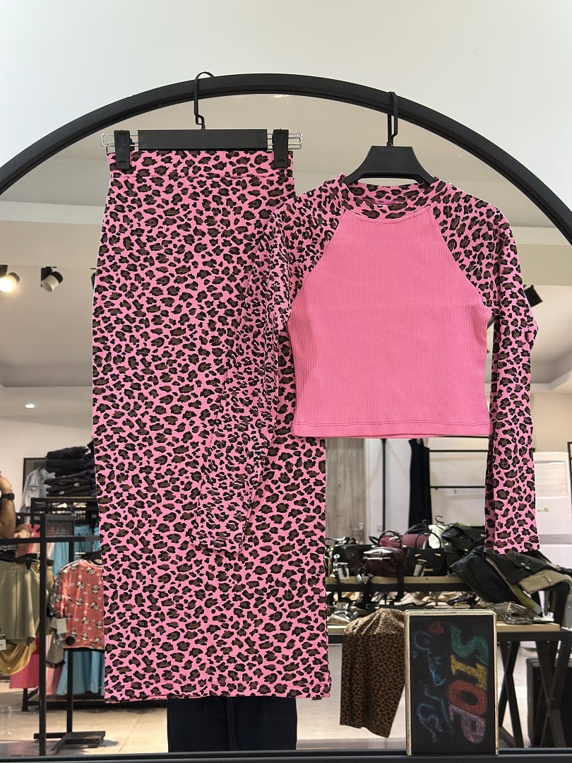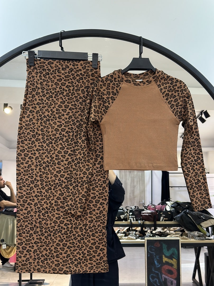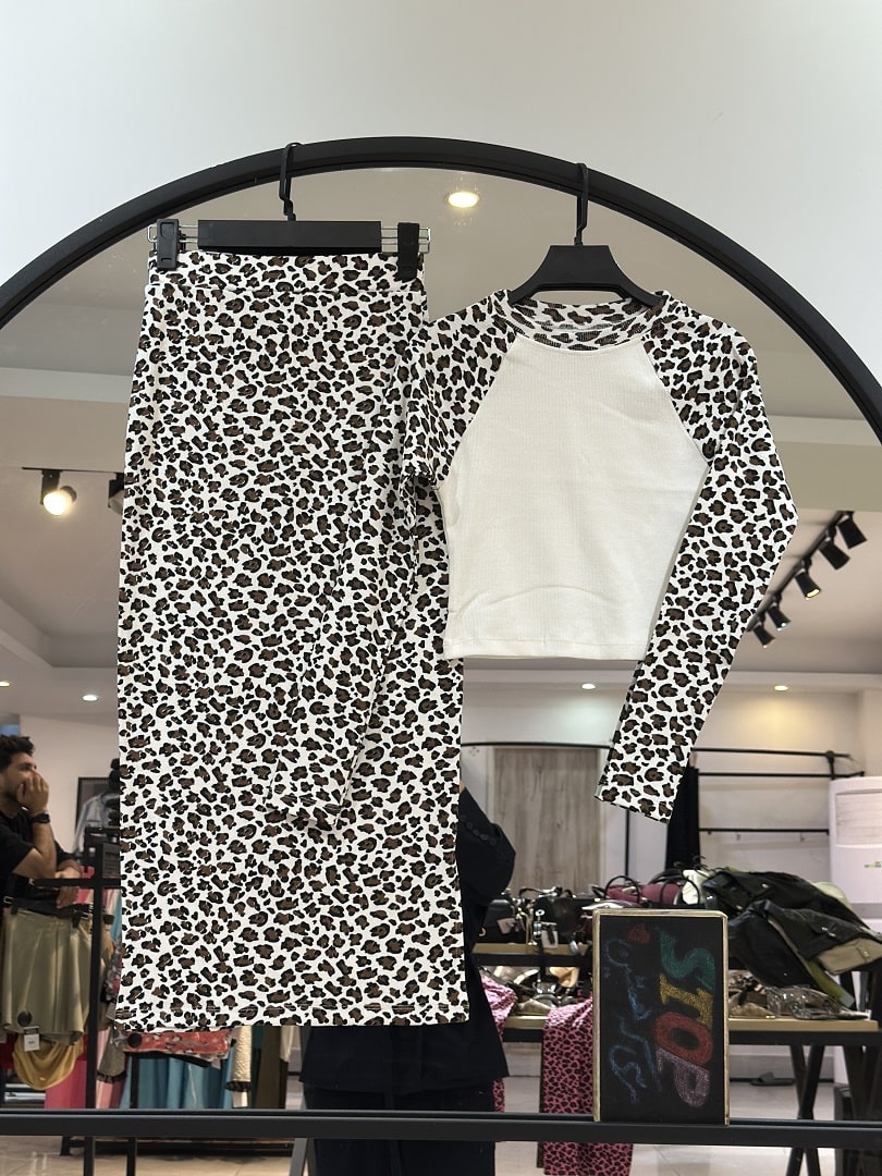 ست کراپ بلوز و دامن پنبه کبریتی پلنگی (35688)