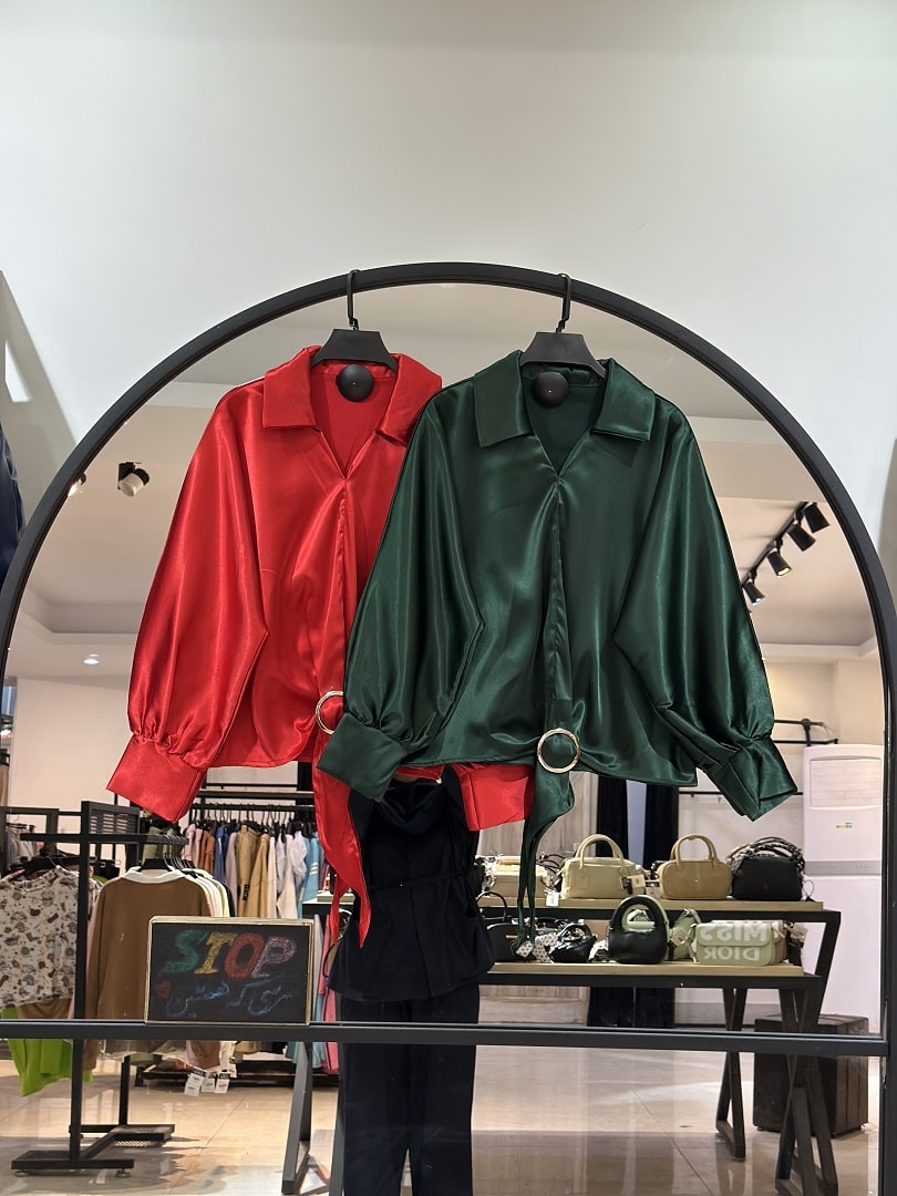 شومیز ساتن گره ای حلقه دار (36127)