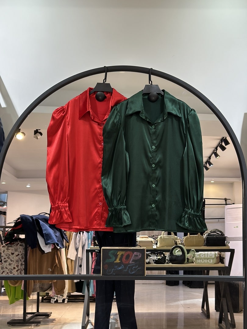 شومیز یلدایی ساتن استین چین و سرشونه پف (36127)